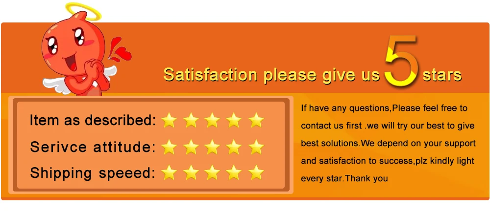 We maintain high standards of excellence and strive for 100% customer satisfaction! Feedback is very important to us.We request that you contact us immediately BEFORE you give us neutral or negative feedback, so that we can satisfactorily address your concerns as soo as possible.It is impossible to address issues if we do not know about them!Plz give us 5 stars feedback,thank you .